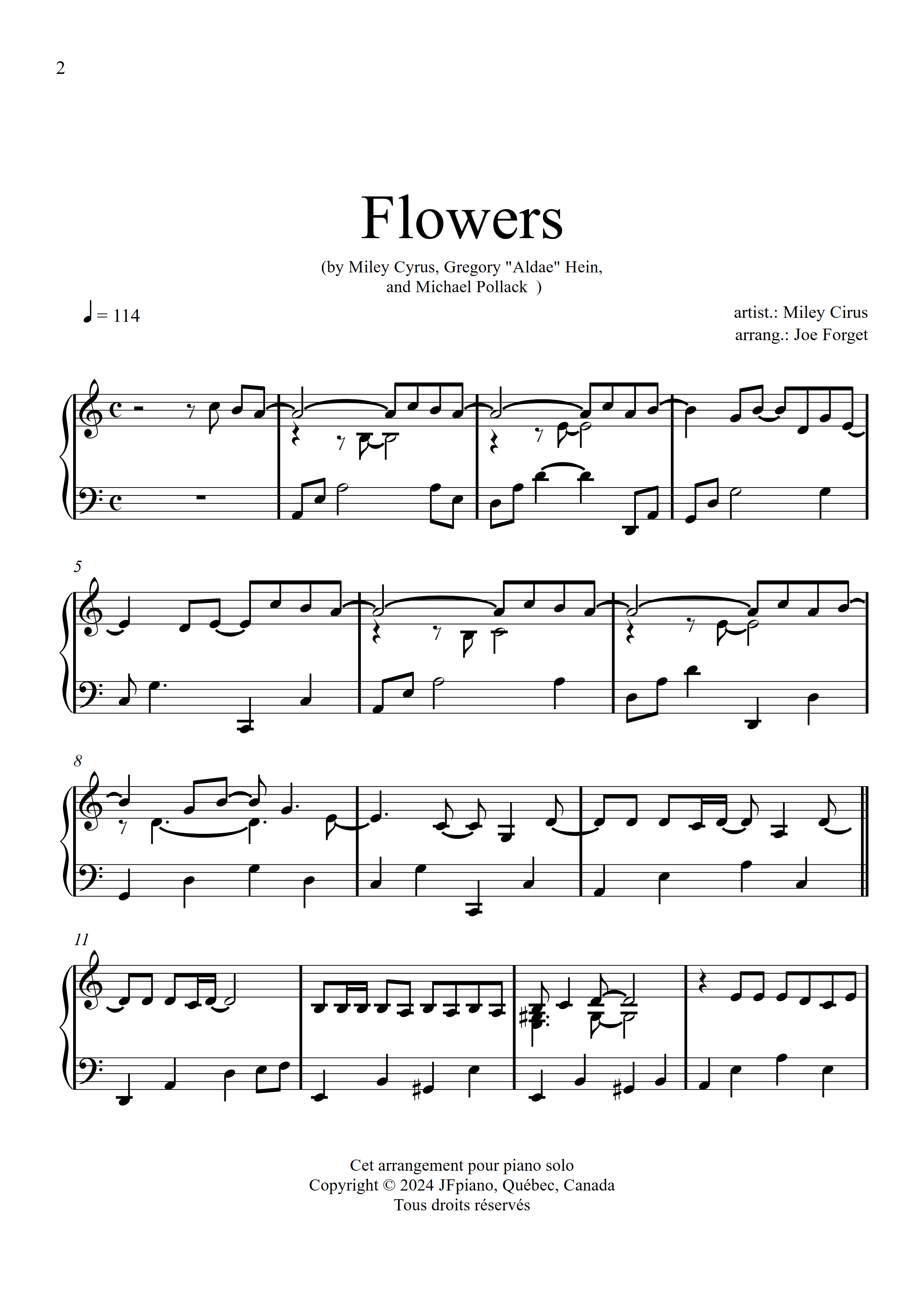 '' Flowers'' (Miley Cyrus) partition piano, niveau intermédiaire// Intermediate piano level, Sheet music