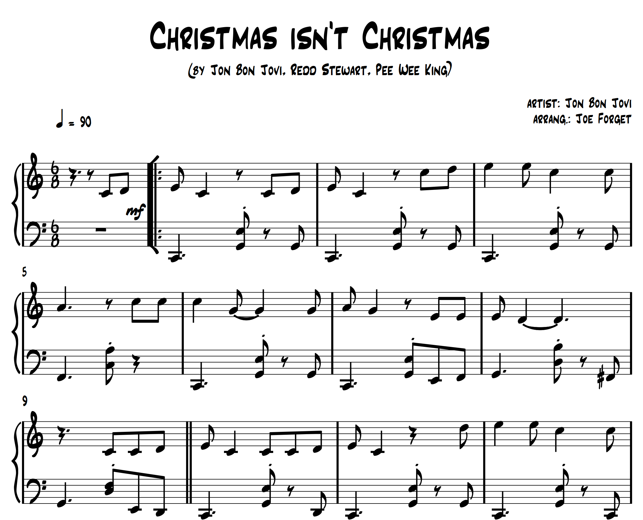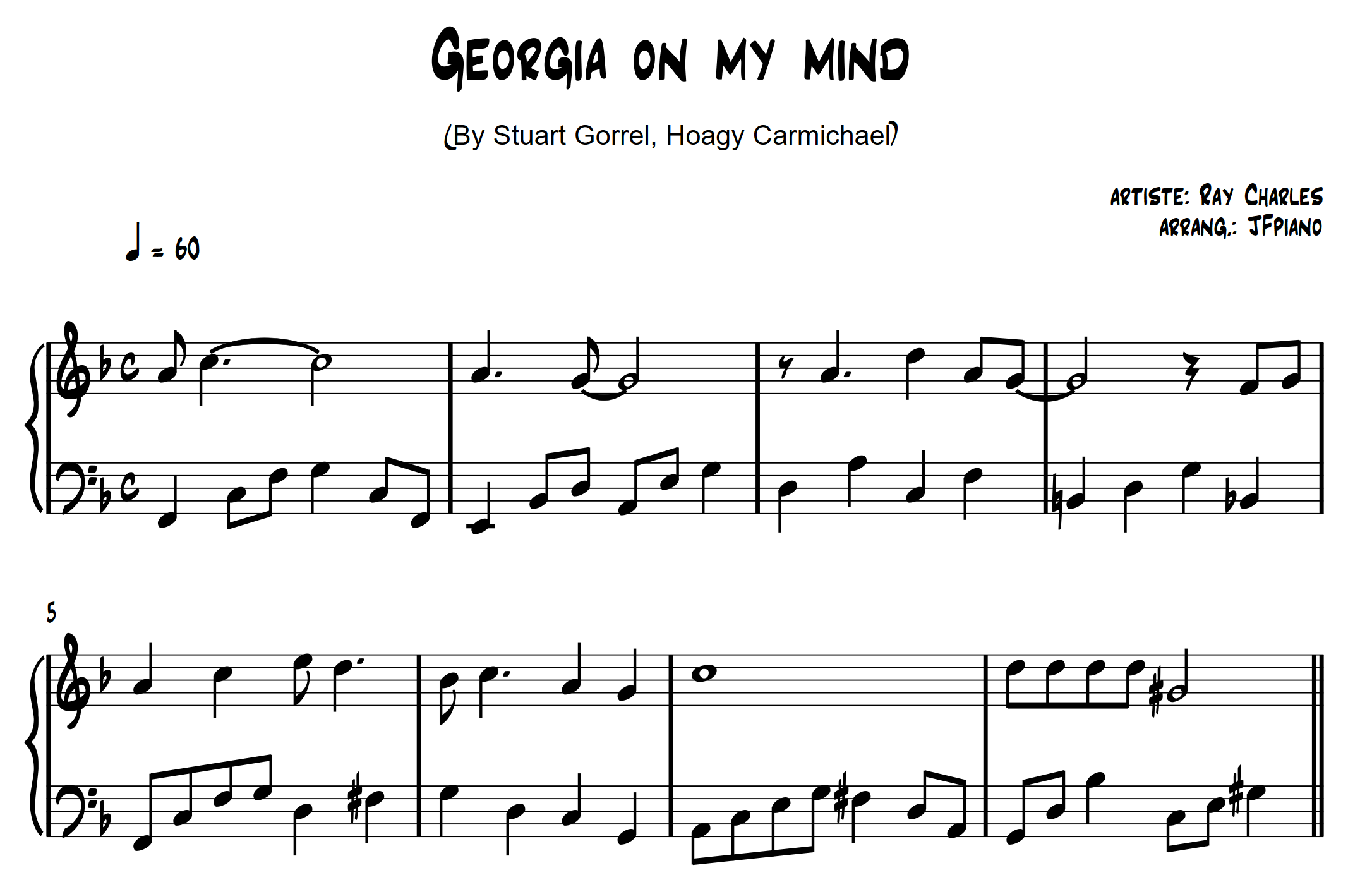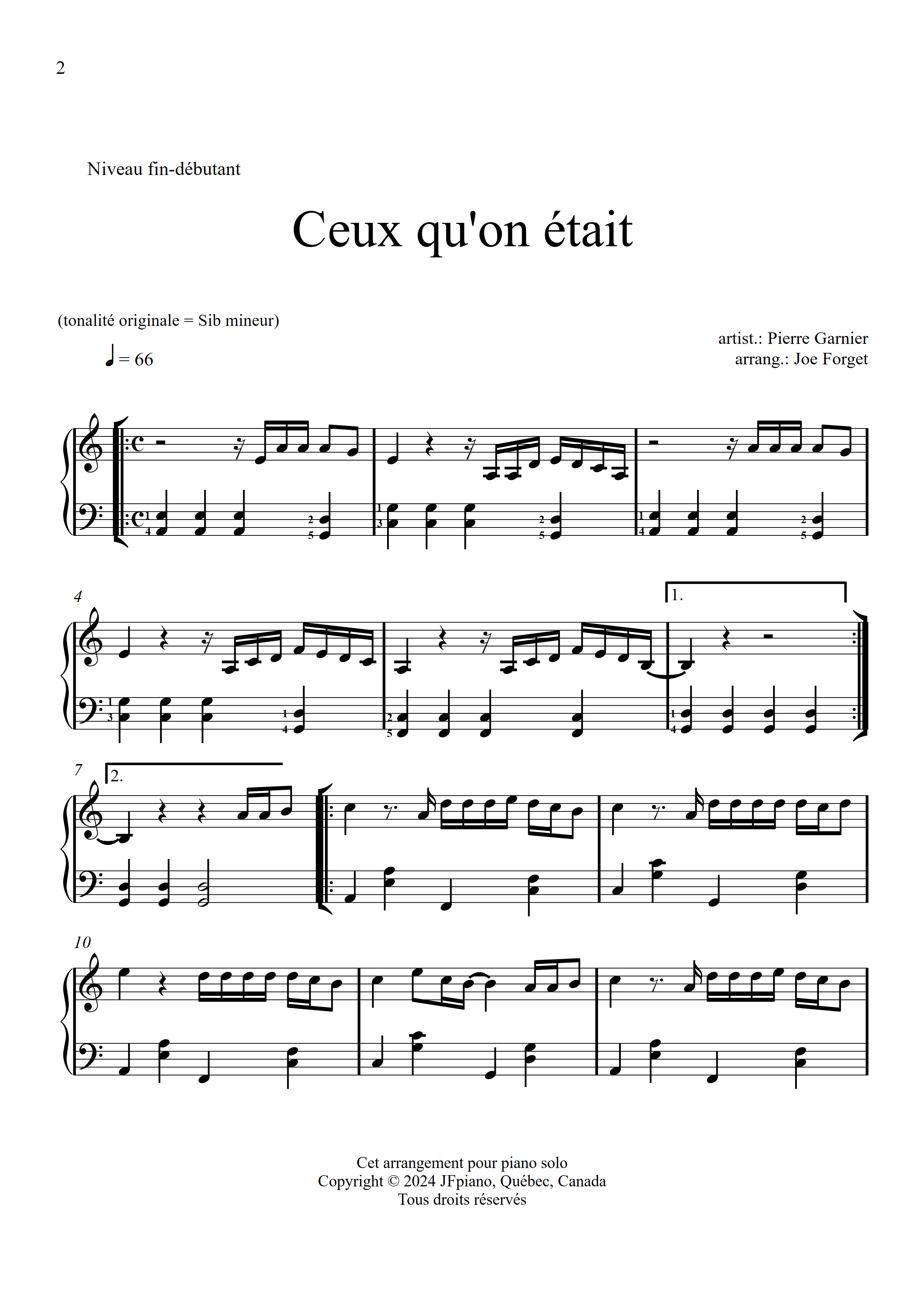 une partition-étude pour piano solo, niveau débutant (avec un minimum de solfège).La mélodie à la main droite est jouée à une voix. La main gauche accompagne aussi à une voix en général, excepté quelques mesures où elle joue des intervalles de quinte, pour simuler des ''power chords'' joués par un guitariste pour donner un effet un peu plus ''agressif'' pour cette section.